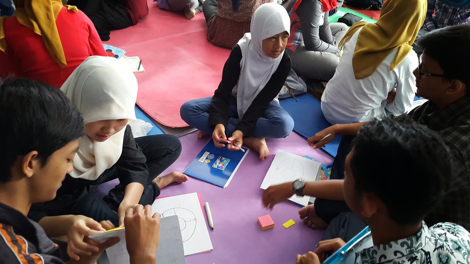 Kelompok yang sudah selesai bisa mengobrol dan menghias lingkaran